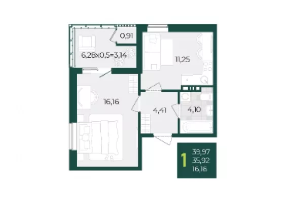Продается однокомнатная новостройка, 39.97 кв.м., 9/21 эт