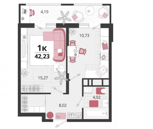 Продается однокомнатная новостройка, 42.23 кв.м., 7/9 эт
