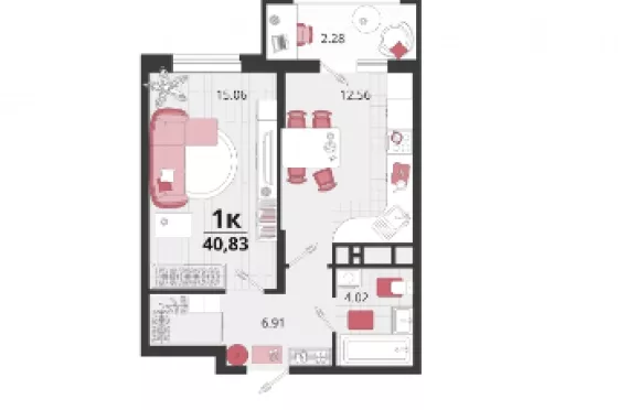 Продается однокомнатная новостройка, 40.83 кв.м., 9/18 эт