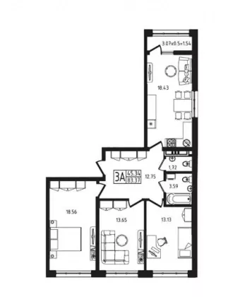 | Площадь, кв.м. | 83.3 |