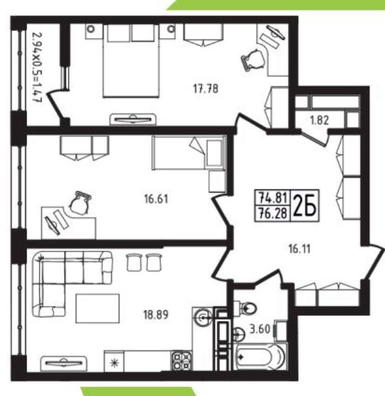 | Площадь, кв.м. | 76.28 |