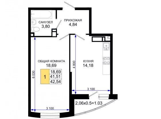 | Площадь, кв.м. | 41.24 |