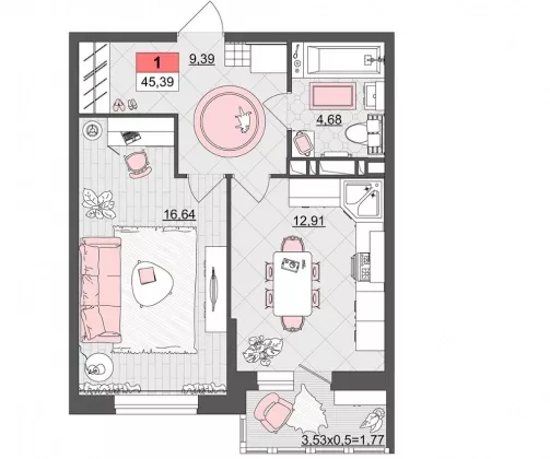| Площадь кухни, кв.м. | 12.91 |