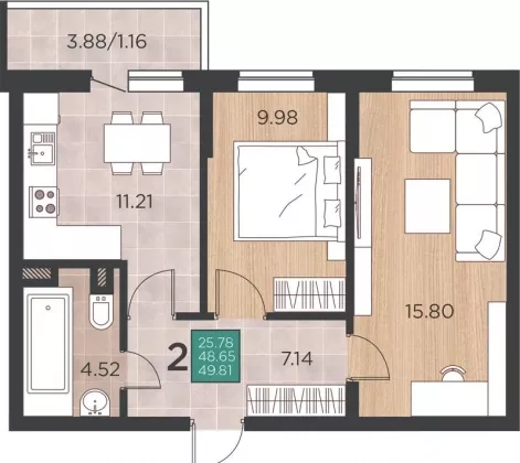 Продается 2-х комн. новостройка, 49 кв.м., 3/17 эт
