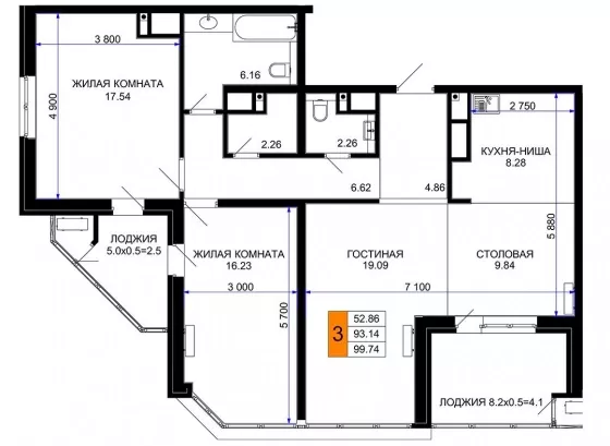 Продается 3-х комн. новостройка, 99 кв.м., 12/12 эт