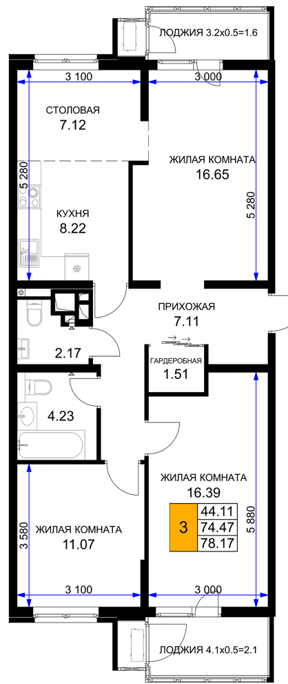 Продается 3-х комн. новостройка, 81.4 кв.м., 5/16 эт