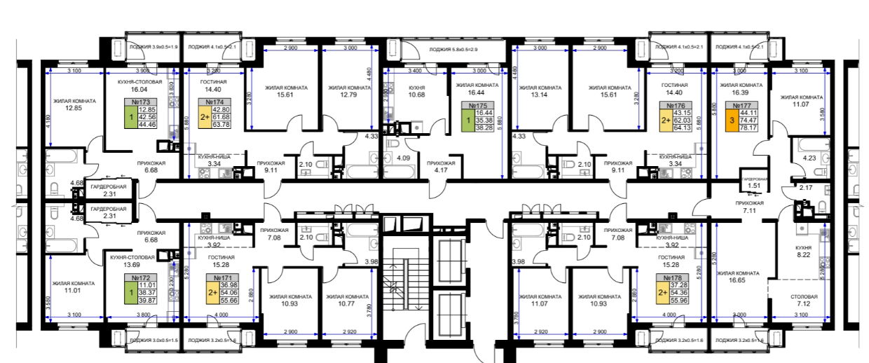 В жилом комплексе предложено множество планировочных решений: в наличии квартиры с большой кухней- гостиной, как классического типа, так и европланировки. Лоджии с витражным остеклением. Сдаются квартиры в предчистовой отделке и высотой потолков 2,7 метра.