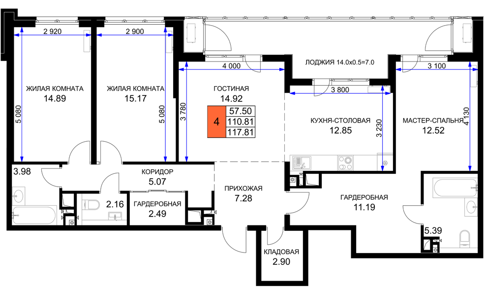Продается 4-х комн. новостройка, 117.81 кв.м., 16/16 эт