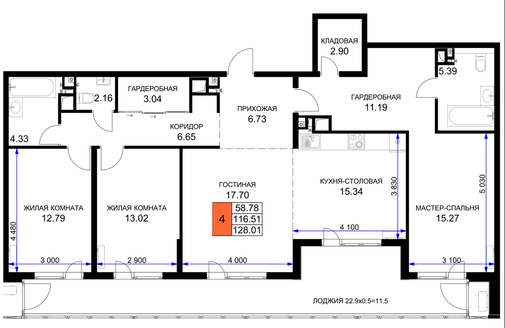 Продается 4-х комн. новостройка, 128.8 кв.м., 16/16 эт