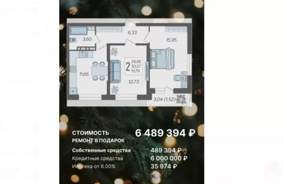 Продается 2-х комн. новостройка, 52 кв.м., 6/16 эт