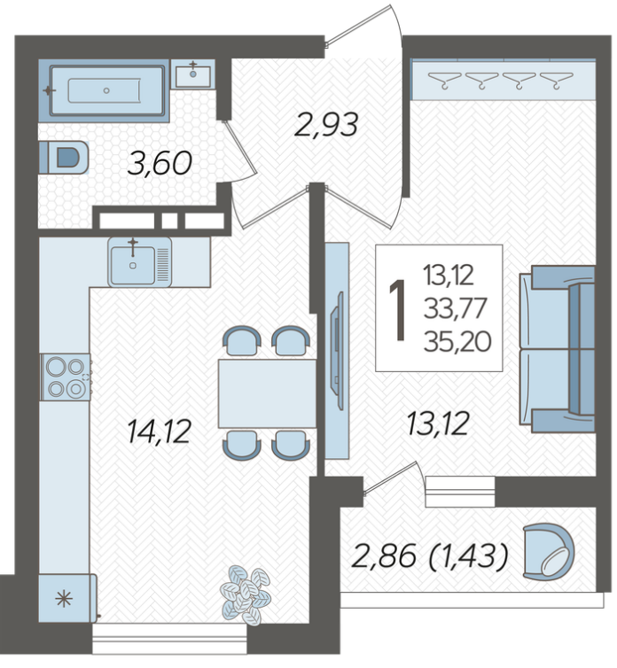 Продается однокомнатная новостройка, 35.2 кв.м., 11/16 эт