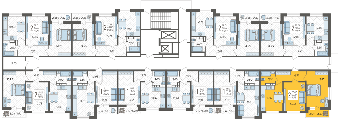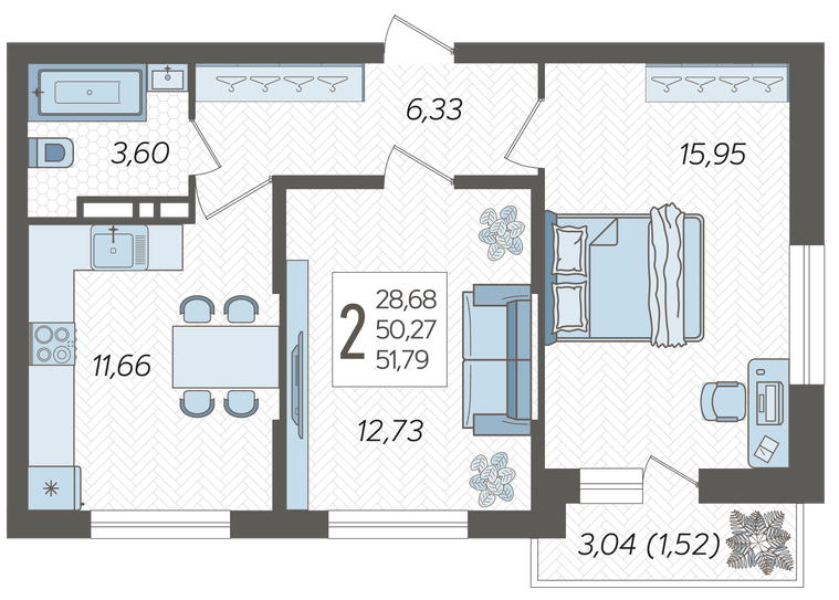 Продается 2-х комн. новостройка, 51.79 кв.м., 15/16 эт