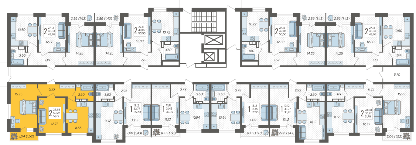 Продается 2-х комн. новостройка, 51.79 кв.м., 7/16 эт