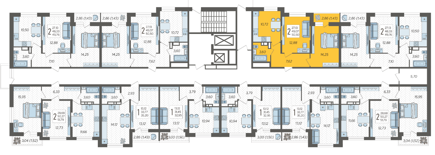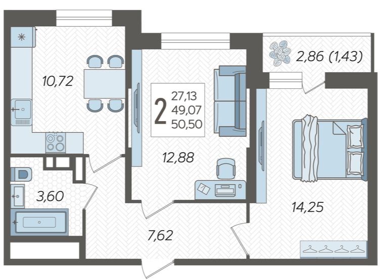 Продается 2-х комн. новостройка, 50.5 кв.м., 15/16 эт