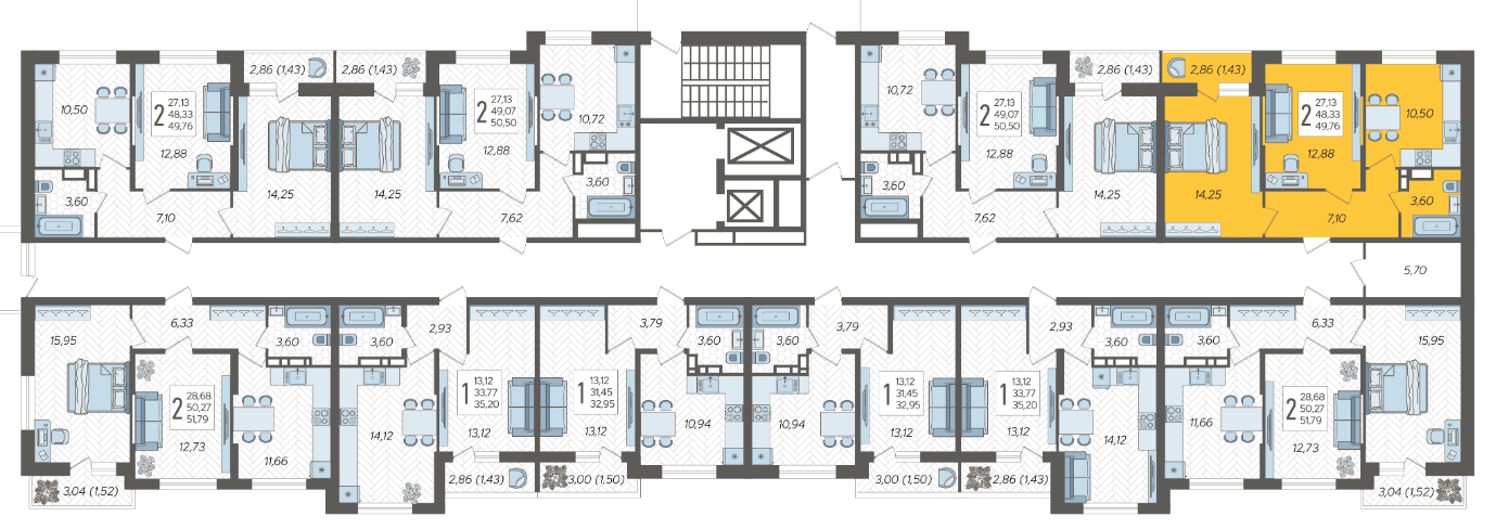 Продается 2-х комн. новостройка, 49.76 кв.м., 16/16 эт