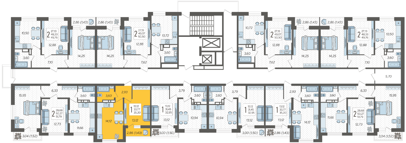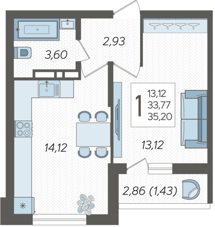 Продается однокомнатная новостройка, 35.2 кв.м., 10/16 эт