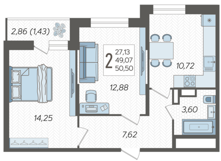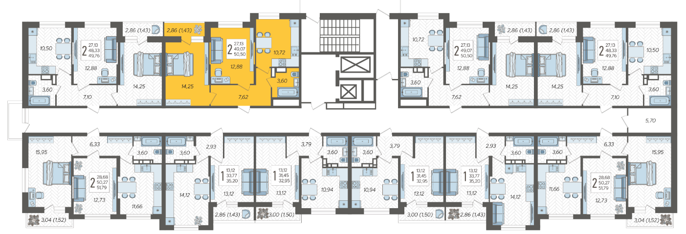 Продается 2-х комн. новостройка, 50.5 кв.м., 16/16 эт