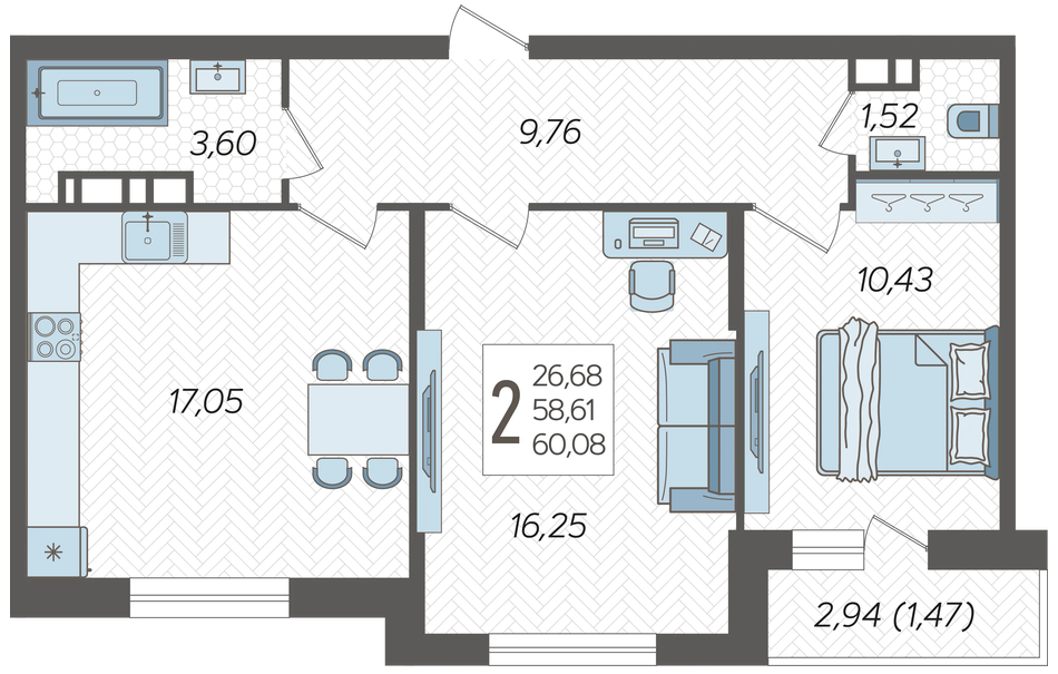 Площадь, кв.м. | 60.08 |