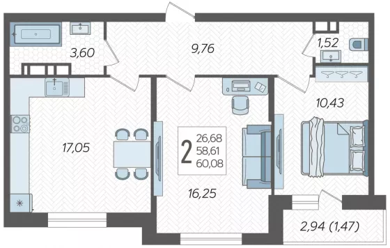 Продается 2-х комн. новостройка, 60.08 кв.м., 18/19 эт