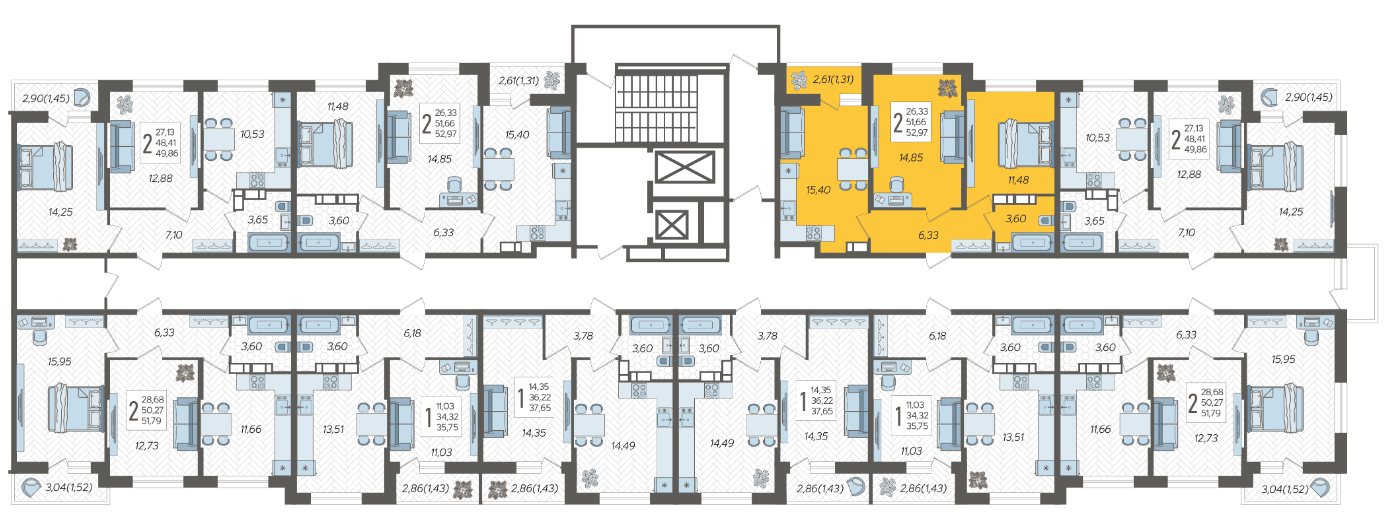 Продается 2-х комн. новостройка, 52.97 кв.м., 16/19 эт