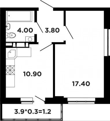 Продается однокомнатная новостройка, 37.3 кв.м., 3/20 эт