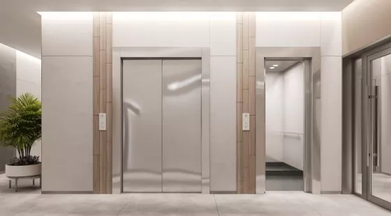 В домах дизайнерские входные группы, колясочные, два скоростных лифта, витражное остекление.