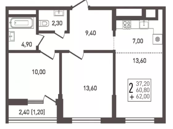 Продается 2-х комн. новостройка, 62 кв.м., 2/8 эт