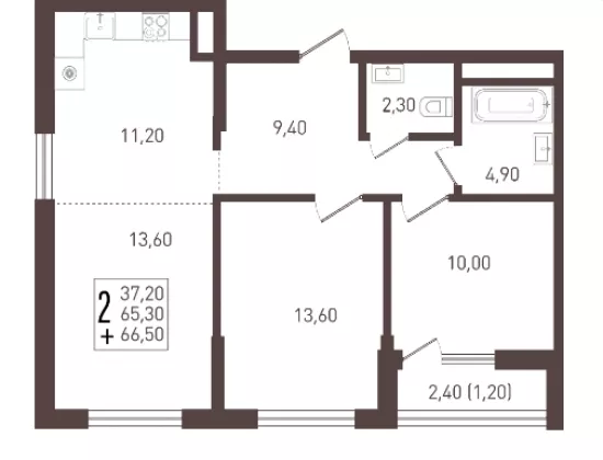 Продается 2-х комн. новостройка, 66.5 кв.м., 1/8 эт