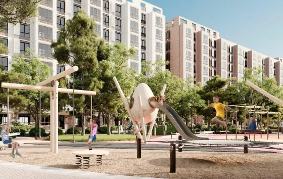 Закрытая территория, двор без машин, детские и спортивные площадки, зоны отдыха, прогулочные аллеи, фонтан, зоны коворкинга, безбарьерная среда, свой детский сад с аквазоной.