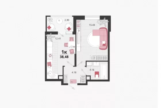 Продается однокомнатная новостройка, 40 кв.м., 17/18 эт
