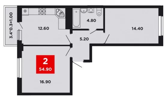Продается 2-х комн. новостройка, 54.9 кв.м., 5/9 эт