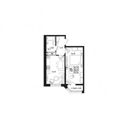 Продается однокомнатная новостройка, 41 кв.м., 9/16 эт