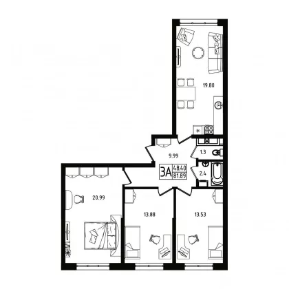 - Планировка с большой кухней-гостиной, разельным санузлом!