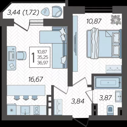 Продается однокомнатная новостройка, 39 кв.м., 11/23 эт
