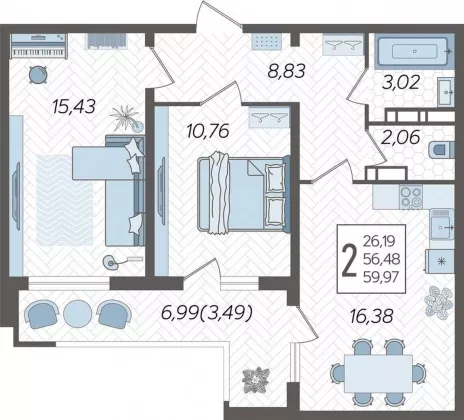 В избранное Двухкомнатная квартира