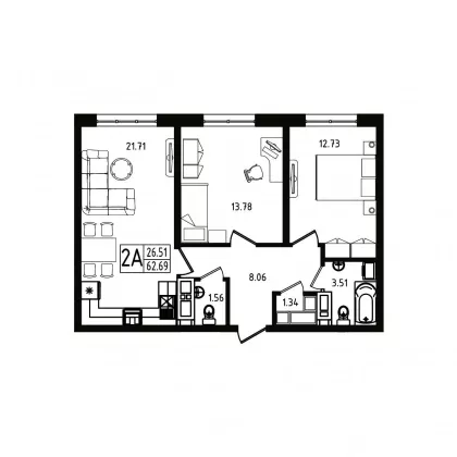 - Планировка с большой кухней-гостиной, разельным санузлом и кладовкой!!