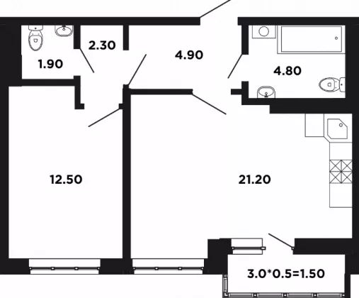Продается однокомнатная новостройка, 49.5 кв.м., 10/20 эт