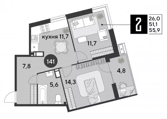 | Жилая площадь | 26 |