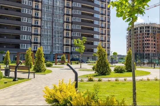 Первые этажи нежилые, там располагаются всевозможные магазины, аптеки, салоны красоты, пункты выдачи заказов. Во дворе детские и спортивные площадки, зоны отдыха для взрослых и детей. Коэффициент парковочных мест 2:1, такого в Краснодаре больше нигде не увидишь. Парковочные места открытого типа + 4 наземных многоуровневых паркинга.