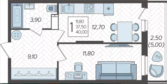 Продается однокомнатная новостройка, 40 кв.м., 11/16 эт