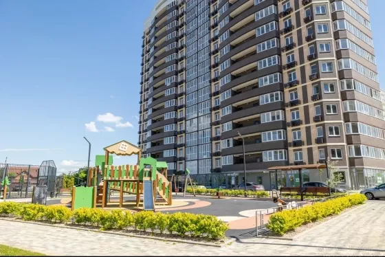 Первые этажи нежилые, там располагаются всевозможные магазины, аптеки, салоны красоты, пункты выдачи заказов. Во дворе детские и спортивные площадки, зоны отдыха для взрослых и детей. Коэффициент парковочных мест 2:1, такого в Краснодаре больше нигде не увидишь. Парковочные места открытого типа + 4 наземных многоуровневых паркинга.