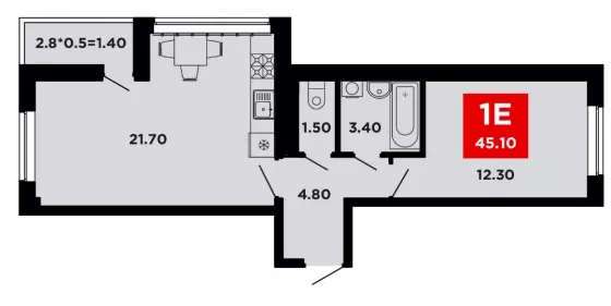 Продается однокомнатная новостройка, 45.4 кв.м., 2/16 эт