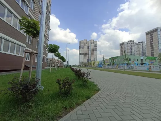 Семейный микрорайон с развитой инфраструктурой: школа, детские сады, поликлиника, детские и спортивные площадки, прогулочные аллеи, остановки общественного транспорта, различные магазины и аптеки — всё в шаговой доступности.