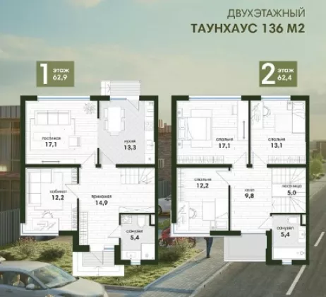 Продается 4-х комн. новостройка, 136 кв.м., 1/2 эт