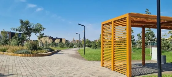 В поселке уже построен сквер для прогулок и детские городки. Будет озеро с ресторанами и магазинами.