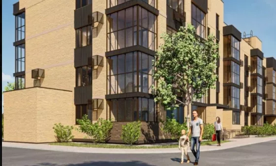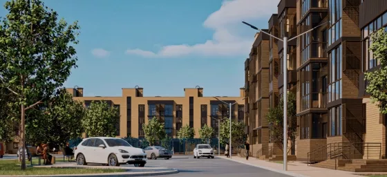 Сквер для прогулок с детскими площадками и зонами для спорта. Школа и детский сад уже принимают детей.