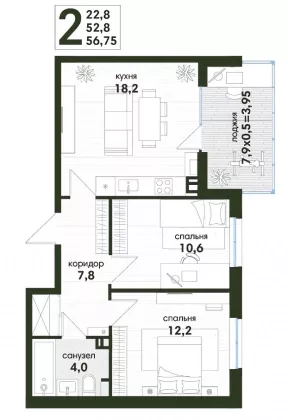 Продается 2-х комн. новостройка, 56.75 кв.м., 2/4 эт