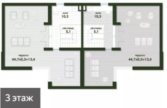 Большая терраса на третьем этаже, можно любоваться красивыми видами!