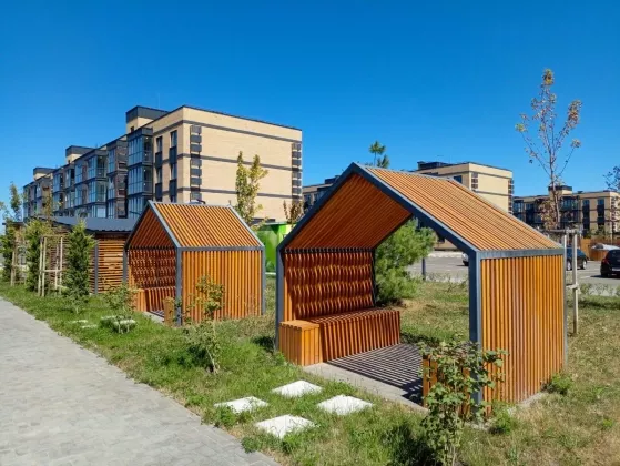 Парковая зона с озеленением " 4 сезона", зоны релакса и спорта, безопасные детские площадки!