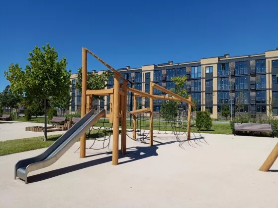 Многоквартирные и индивидуальные дома, муниципальная школа и детский сад, собственные парк с ландшафтным многоуровневым дизайном, озеленением «4 сезона» и собственное озеро с видовым рестораном, зоны для спорта и отдыха, детские площадки, единые центры коммерческой торговли- всё в шаговой доступности!